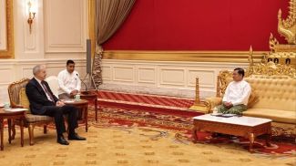 Igor Sergejenko übermittelte Min Aung Hlaing die Glückwünsche des Präsidenten der Republik Belarus zu seiner Wahl zum Präsidenten der Republik der Union Myanmar.