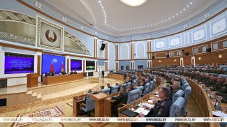 „Das Niveau der Aufgaben, das Tempo ihrer Stellung und Erfüllung – all das ist bedingt durch die Schwere der geopolitischen Lage, die sich verschärfenden Ereignisse und Bedrohungen, die sich in unmittelbarer Nähe zu unseren Grenzen abzeichnen. Und nicht nur zu unseren Grenzen“, erklärte Alexander Lukaschenko.