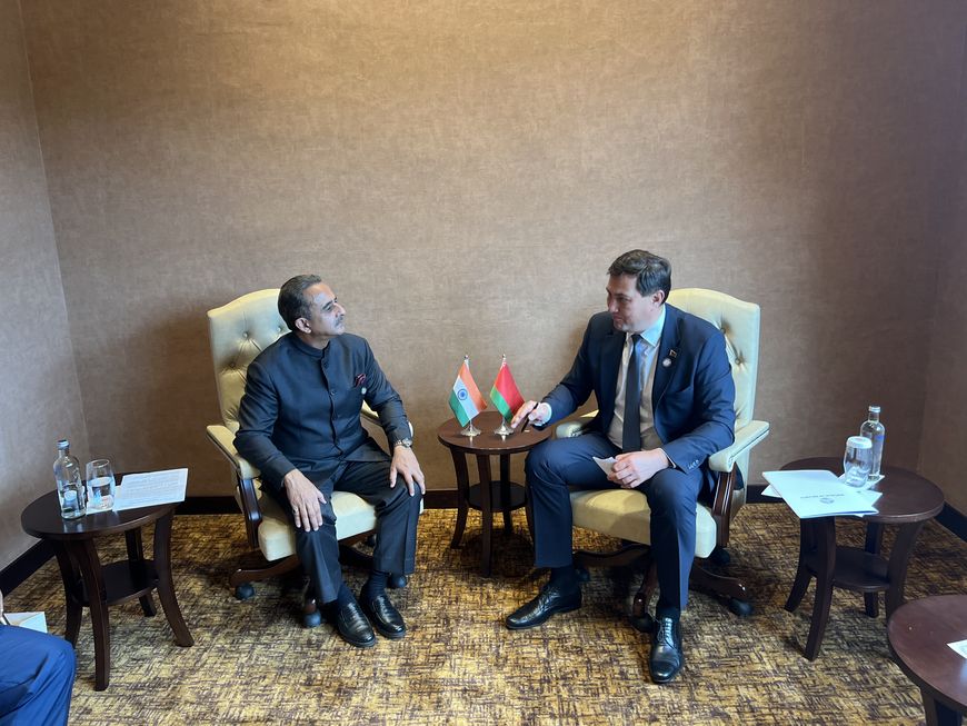 Bei einem Treffen mit dem indischen Staatsminister für auswärtige Angelegenheiten, Kirtie Vardhan Singh, wurde das hohe Maß an Vertrauen in der Zusammenarbeit zwischen den beiden Ländern hervorgehoben. Die Seiten diskutierten die Organisation von Besuchen auf höchster und hoher Ebene, unter anderem im Rahmen von Veranstaltungen regionaler Zusammenschlüsse, sowie Themen zur Ausweitung der Zusammenarbeit in den Bereichen Handel, Wirtschaft und Investitionen, insbesondere die Durchführung einer Sitzung der zwischenstaatlichen Kommission für handelspolitische und wirtschaftliche Zusammenarbeit in Minsk bis Ende des Jahres und die Umsetzung gemeinsamer Projekte in den Bereichen Industrie, wissenschaftlich-technischen und bildungspolitischen Bereichen. Es wurde vereinbart, einen gemeinsamen Fahrplan für alle Bereiche der bilateralen Zusammenarbeit von gegenseitigem Interesse zu entwickeln. Darüber hinaus wurde die Notwendigkeit einer Intensivierung der Arbeiten zur Verbesserung der vertraglichen und rechtlichen Grundlagen hervorgehoben. Indien bestätigte auch seine Teilnahme an der 3. eurasischen Sicherheitskonferenz in Minsk zur.