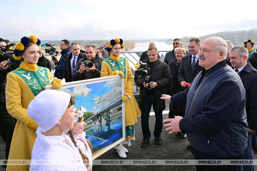 Wie bereits berichtet, besuchte das Staatsoberhaupt am Vortag den Kreis Mosyr, wo er an der Einweihungszeremonie der renovierten Brücke über den Fluss Prypjat teilnahm.
