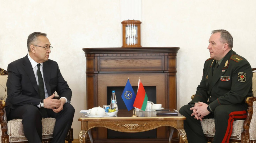 MINSK, 6. April (BelTA) - Im belarussischen Verteidigungsministerium fand ein bilaterales Treffen zwischen Verteidigungsminister Wiktor Chrenin und dem Generalsekretär der OVKS, Taalatbek Masadykov, statt. Dies gab der Pressedienst des belarussischen Verteidigungsministeriums bekannt.