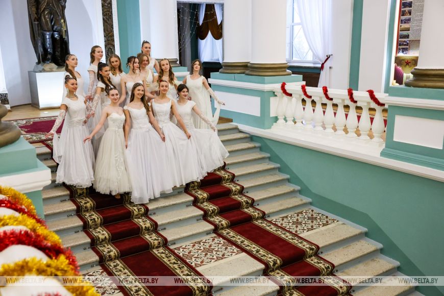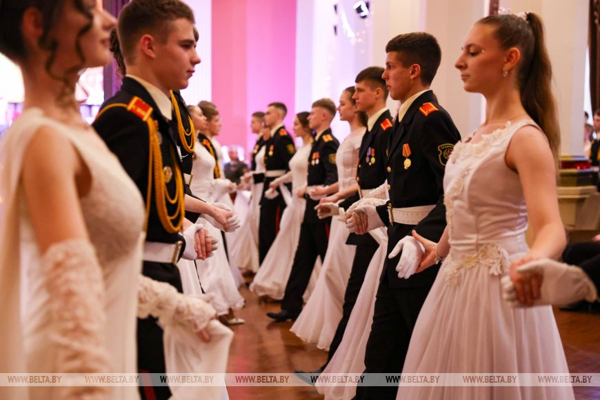 An der Veranstaltung nahmen 100 Paare teil, darunter Suworow-Kadetten sowie Schülerinnen der Minsker Kunsthochschule und des Mädchengymnasiums in Schodino.